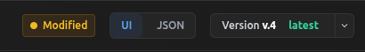 To preview changes in a draft or restored draft, switch the UI or JSON view selector to that draft and experiment in the Virtual Model Editor — all without impacting production calls.