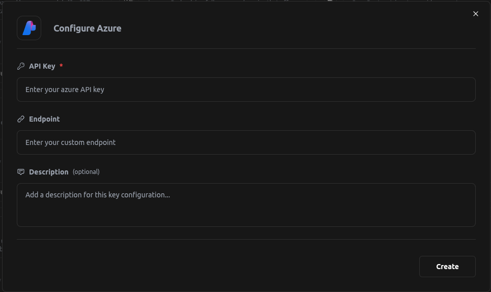 - Endpoint: Your custom endpoint URL (optional - leave blank for standard OpenAI, or enter your Azure OpenAI endpoint)