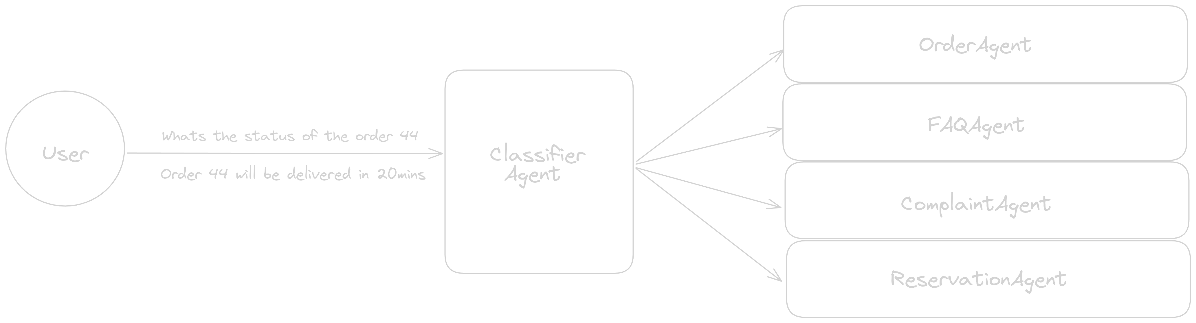 instructions="You are a restaurant customer support agent. Handoff to the appropriate agent based on the user query.",